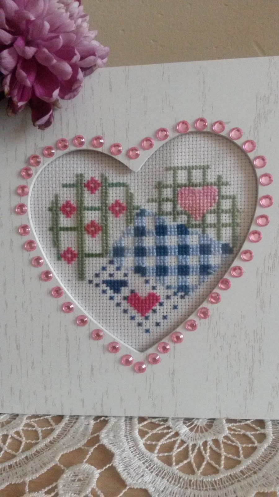 Poczatkowo myslalam,zeby zrobic kartke, ale haft ostatecznie wyladowal w ramce :-) Na razie jest ozdoba sypialni a co stanie sie z nim dalej zobaczymy:-)